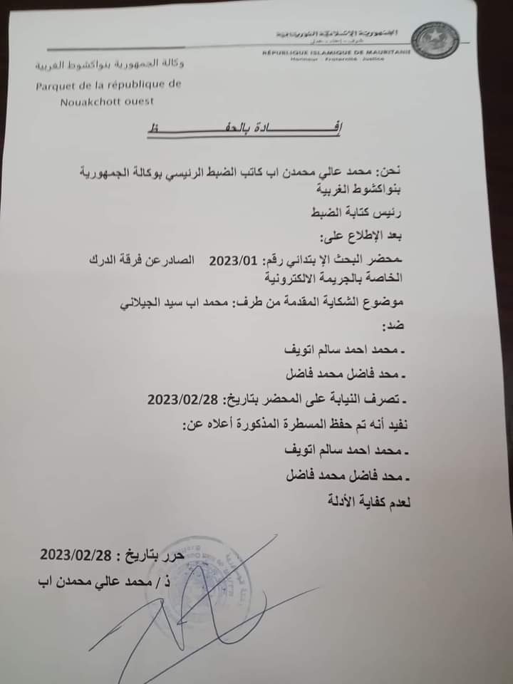 حفظ شكاية ولد الجيلاني لعدم كفاية الادلة "وثيقة"