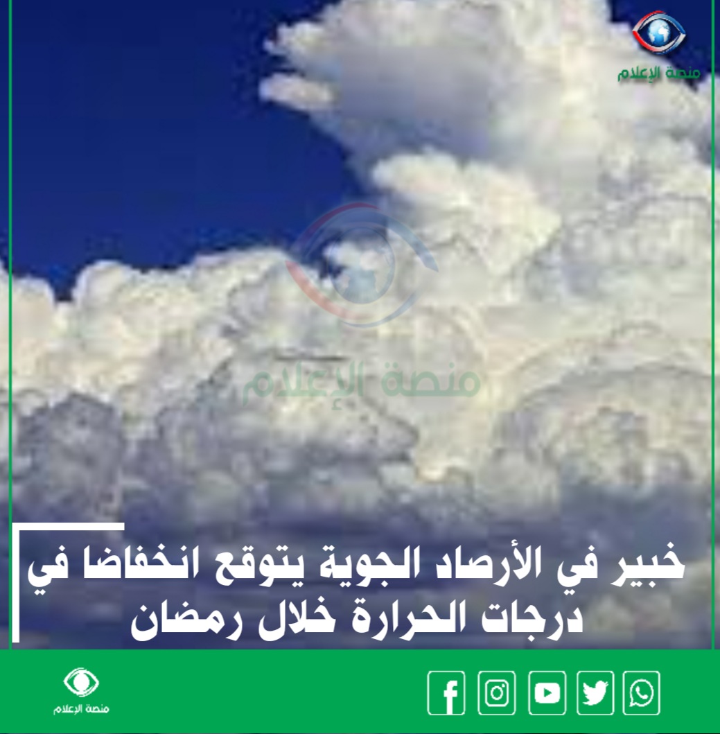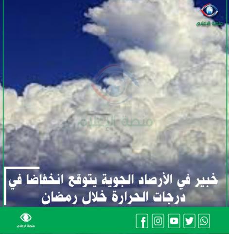 (وكالة الإعلام الإخبارية): توقع الخبير في الأرصاد الجوية عمر كوناتي، انخفاضا طفيفا في درجات الحرارة خلال شهر رمضان.