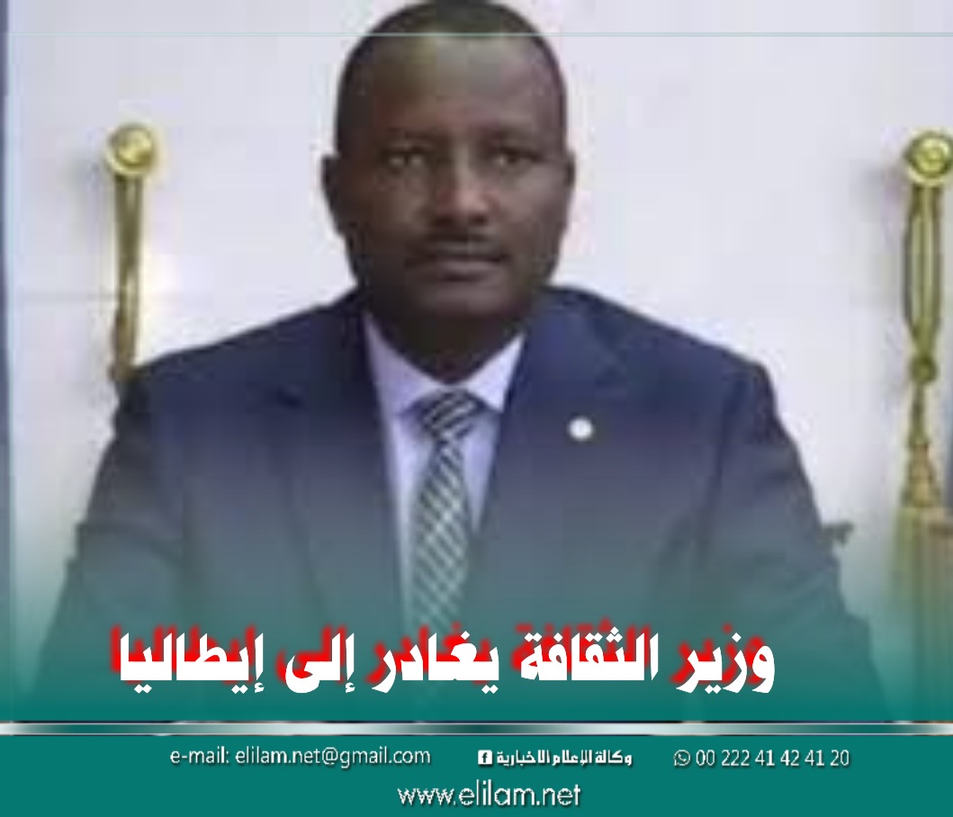 (وكالة الإعلام الإخبارية): غادر وزير الثقافة والشباب والرياضة والعلاقات مع البرلمان، محمد ولد أسويدات، انواكشط مساء أمس الإثنين متوجها إلى العاصمة الإيطالية روما .