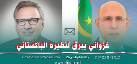 وقال غزواني في برقيته: بمناسبة احتفال بلادكم بعيدها الوطني، يسرني أن أعبر لفخامتكم عن أحر التهاني متمنيا، للشعب الباكستاني الشقيق، المزيد من التقدم والرخاء.