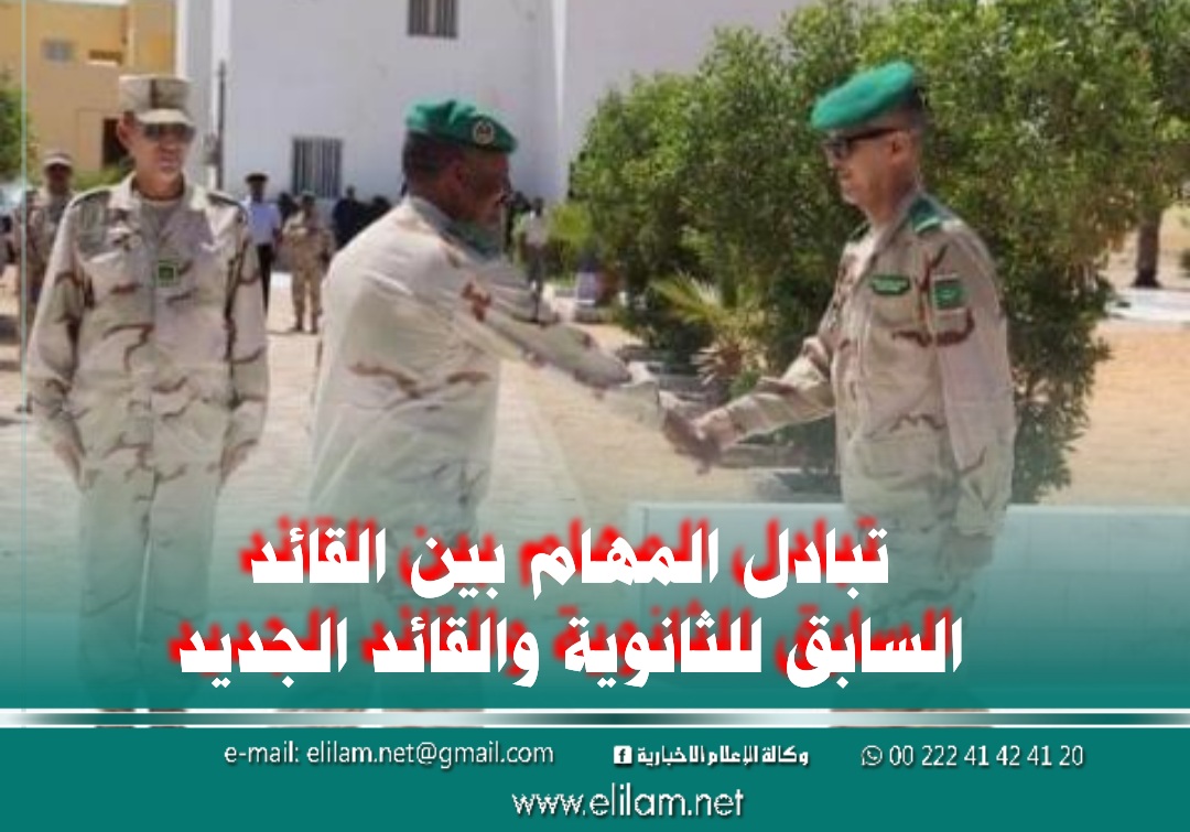 (وكالة الإعلام الإخبارية): تم يوم أمس الجمعة بنواكشوط، تبادل المهام بين القائد السابق للثانوية العقيد محمد المصطفى السخاوي، وقائدها الجديد العقيد محمد المامي كلاي.