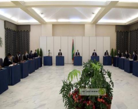 اجتمع اليوم مجلس الوزراء في القصر الرئاسي برئاسة ولد الغزواني وكان لافتا في الاجتماع مراعاة المسافة بين أعضاء الحكومة ضمن الإجراءات الاحترازية المطلوبة لمنع انتشار فيروس كورونا ، بما في ذلك المسافة بين رئيس الجمهورية و بين أعضاء المجلس كما تميز الإجتماع بجلوس الرئيس وكل وزير على مقعدا خاصا به مع ارتداء كمامة.