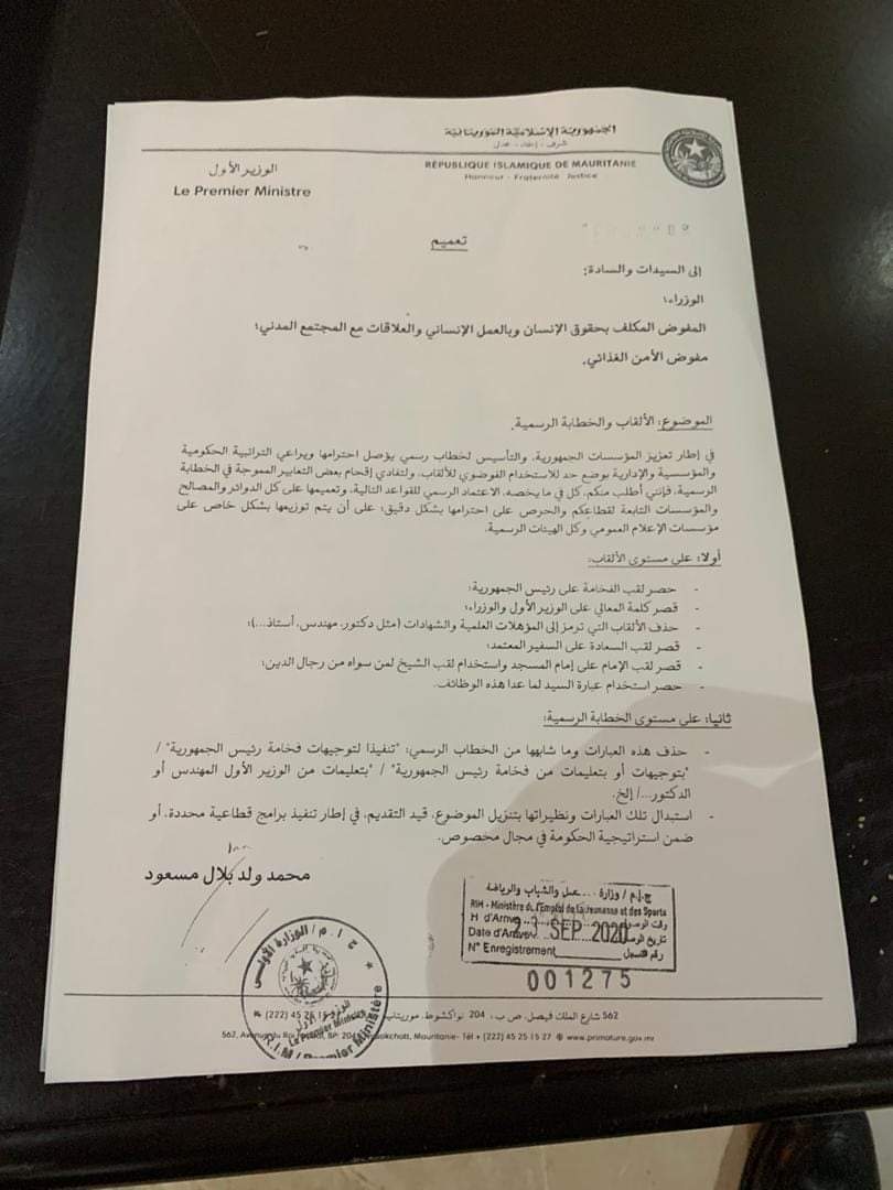 الإعلام نت - أصدرت الوزارة الأولى تعميما بمنع بعض العبارات في الخطاب الرسمي. ومن بين العبارات الرسمية الممنوعة بموجب المرسوم "بتعليمات سامية من فخامة رئيس الجمهورية" وكذلك "معالي الوزير الأول المهندس او الدكتور".
