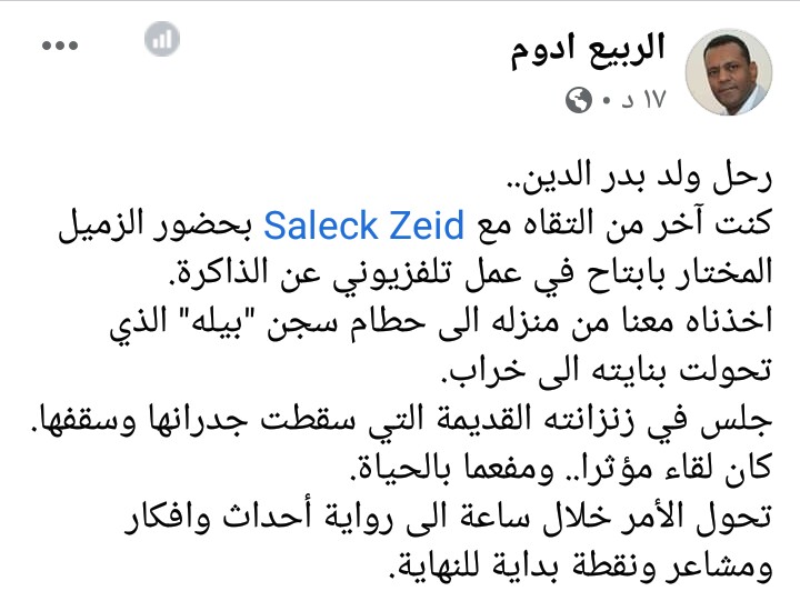 ومن جهته اعتبر رئيس حزب الرباط السعد ولد لوليد الراحل ولد بدر الدين رجلا توفي بعد عمر حافل بمقارعة الظلم والأحكام والعسكرية، كما ظل محاربا قويا في وجه الامبريالية والاستعمار، وظل صوتا قويا للمظلومين والمهمشين في كل أنحاء العالم يضيف ولد لوليد.
