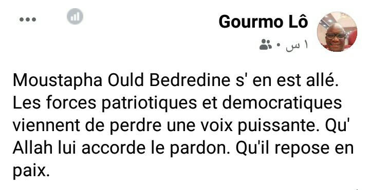 وقد ألقى رحيل القيادي السياسي الذي عرف بخلفيته اليسارية ومناصرته للقصايا التحررية وقضايا العمال والنقابات بظلاله على تدوينات كافة الطيف بمختلف توجهاته وأعماره، فقد نعى رئيس الحزب الحاكم السابق سيدي محمد ولد محم القيادي الراحل على صفحته، ووصفه بالصديق والأخ.