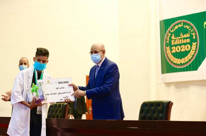 وقدم رئيس الجمهورية خلال هذا الحفل الجائزة الأولى من الرالي للسنة الثالثة إعدادية التي فازت بها نواكشوط الشمالية للتلميذة أم كلثوم منت محمد الأمين من إعدادية الامتياز ٣ و الجائزة الأولى للخوامس التي فازت بها ولاية لعصابه للتلميذة ابتسام ماموني والجائزة الأولى للسوادس التي فازت بها نواكشوط الغربية للتلميذ يحظيه أوفى من مدرسة الإمتياز 1.