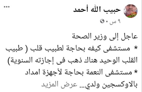 مستشفى كيفه بحاجة لطبيب قلب ( طبيب القلب الوحيد هناك ذهب فى إجازته السنوية)