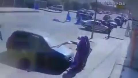 ويظهر الفيديو المحتال وهو ينتقي السيارات ليقترب من إحداها ويلمسها ويرتمي على الأرض ليوهم صاحبها بأن سيارته صدمته.