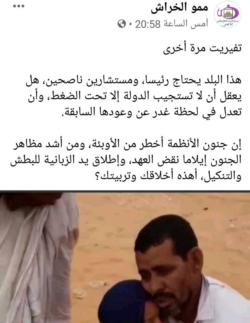 ما أعرفه عن الرئيس #محمد_الغزواني الذي سعيت بكل جهدي ( وعلى قدري) خلال حملته الانتخابية ليتولى قيادة وطني ،ثقة فيه وفي نبل أخلاقه.. يجعلني أرفض تماما الاقتناع أنه على علم بمثل هذه الممارسات أحرى أن يباركها !