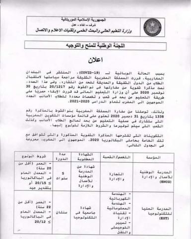 الإعلام نت _ فتحت الحكومة المغربية بالتعاون مع وزارة التعليم العالي والبحث العلمي الموريتانية المجال أمام الطلبة الممنوحين إلى مؤسساتها التعليمية.