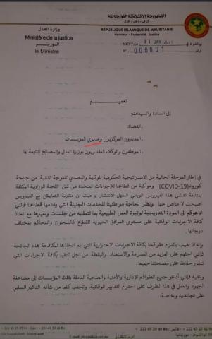 الإعلام نت _ أصدر وزير العدل الموريتاني د.محمدمحمود ولدبيه تعميما بموجبه تعود جلسات المحاكم من جديد بعد تعليقها بسبب جائحة كوفيد 19. وأكد التعميم في إطار العودة للعمل من جديد، ضرورة الالتزام بالإجراءات الصحية والإحترازية من جائحة كورونا المستجد.
