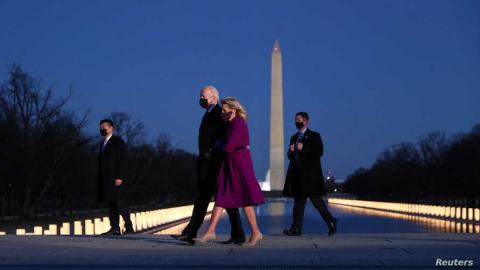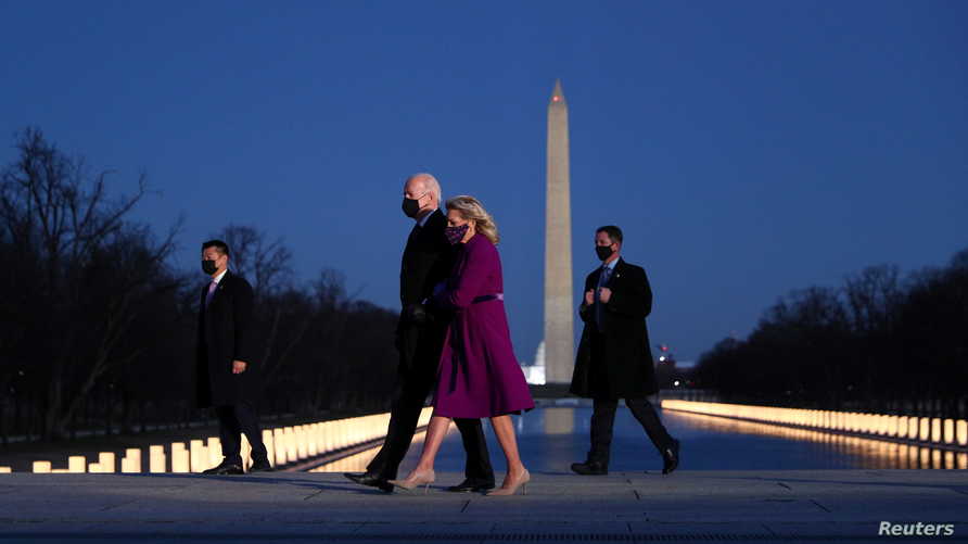 وفور وصوله إلى واشنطن، أحيا بايدن ذكرى 400 ألف أمريكي حصد أرواحهم لغاية اليوم فيروس كورونا المستجدّ، وذلك خلال حفل قصير أقيم أسفل نُصب أبراهام لنكولن التذكاري عشيّة تولّي الرئيس السادس والأربعين للولايات المتّحدة السلطة.