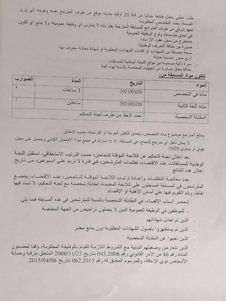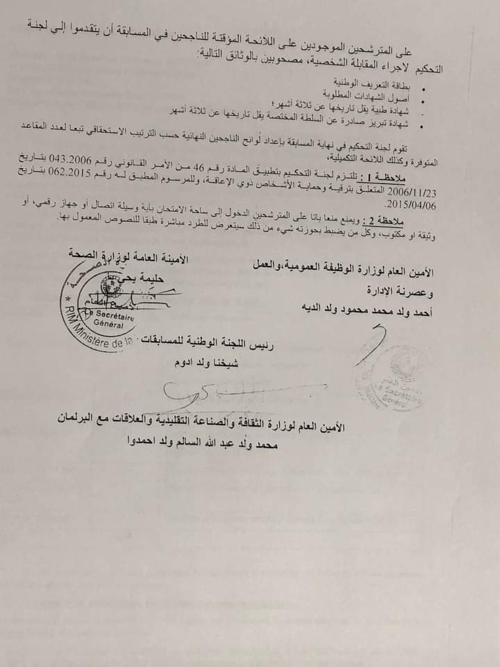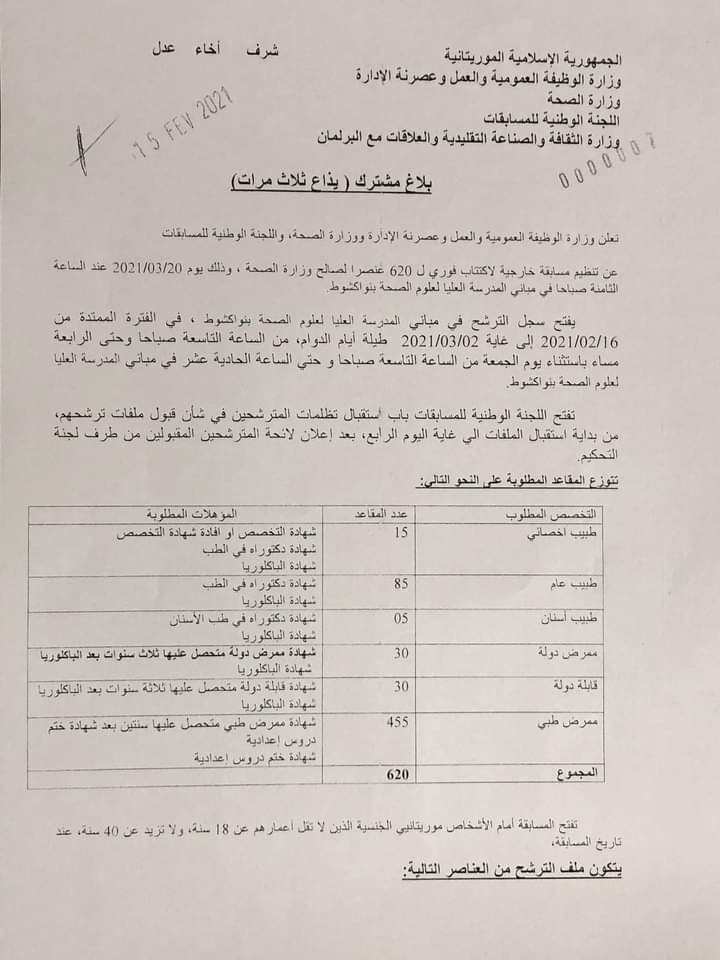 الإعلان قال المسابقة ستنظم يوم 20 مارس 2021، عند الساعة 8 صباحا، في مباني المدرسة العليا لعلوم الصحة بانواكشوط.