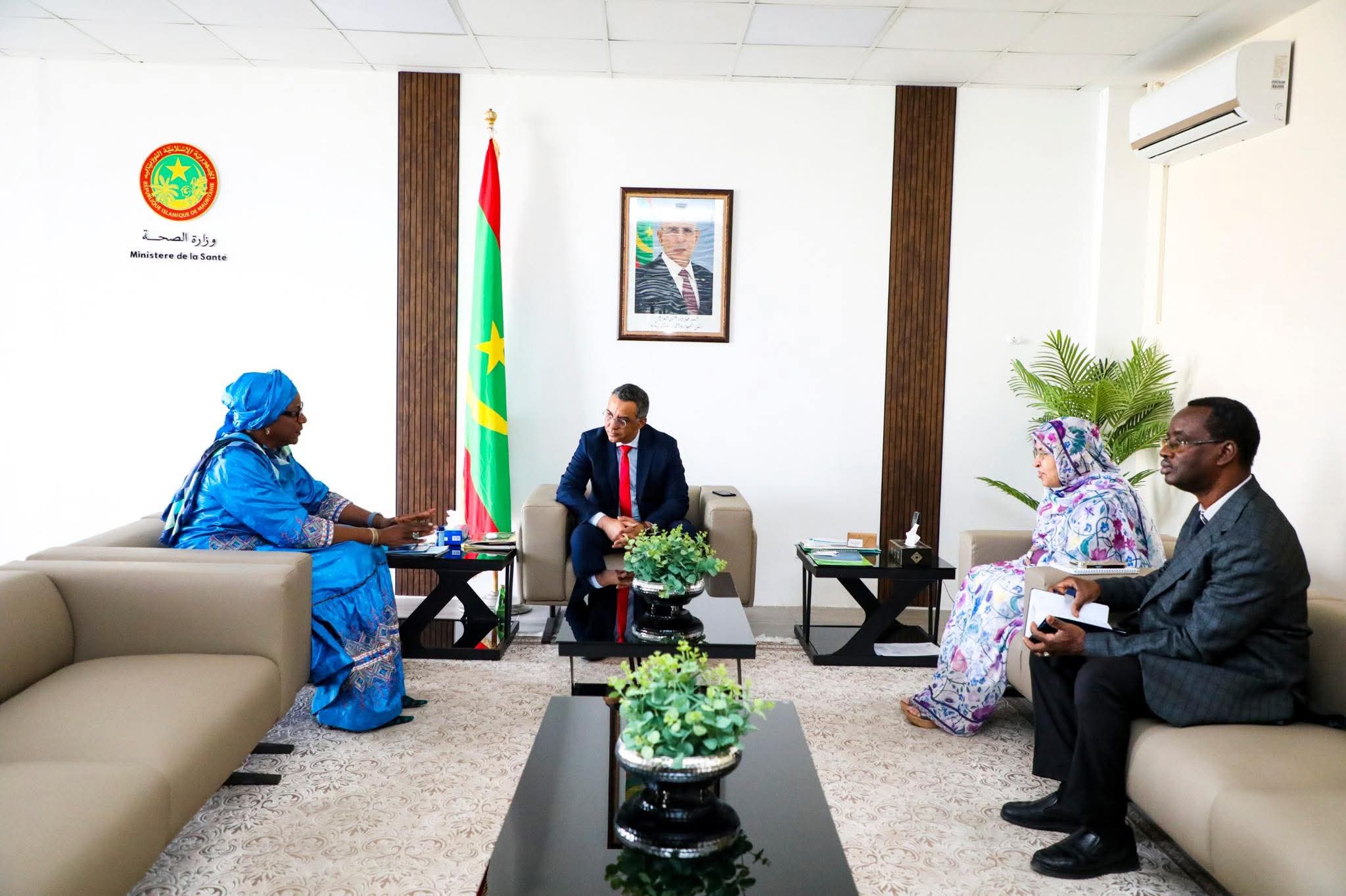 أجرى وزير الصحة، محمد محمود ولد اعل محمود، اليوم الاثنين مباحثات مع الممثلة المقيمة لمنظمة الصحة العالمية في نواكشوط، شارلوت فاتي نجاي.