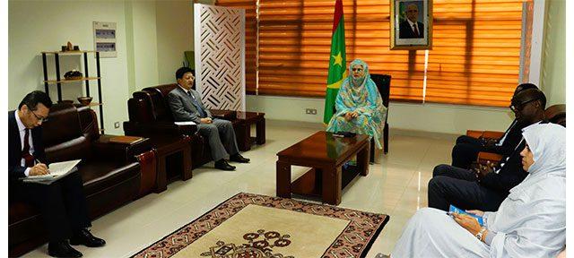 تباحثت وزيرة التجارة والسياحة زينب بنت أحمدناه اليوم الجمعة مع السفير الصيني المعتمد لدى موريتانيا لي باجين.