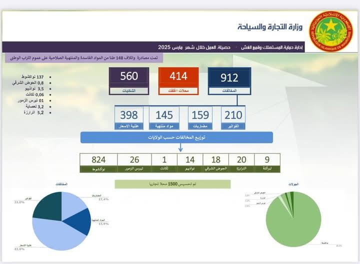 وأكدت أن المخالفات من بينها 398 مخالفة مرتبطة بعدم علانية الأسعار و210 ترتبجة بعدم تقديم فواتير و159 متعلقة باحتكار ومضاربات في الأسعار و145 مخالفة متعلقة بمواد منتهية الصلاحية و568 متعلقة بشكاية وصلت رقم الإدارة والأرقام الخضراء وأرقام المندوبيات الجهوية وتمت معالجتها.