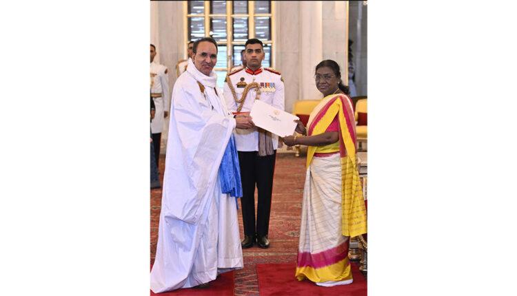 Oct 06 / التعليقات سفير موريتاني جديد لدى الهند بواسطة محمد محمود قدم أحمدو ولد أحمدو، في نيودلهي، أوراق اعتماده بصفته سفيرًا فوق العادة وكامل السلطة للجمهورية الإسلامية الموريتانية لدى جمهورية الهند.وتسلمت أوراق اعتماده، لدراوبادي مورمو، رئيسة جمهورية الهند. اثنين, 2025/10/06 - 13:08